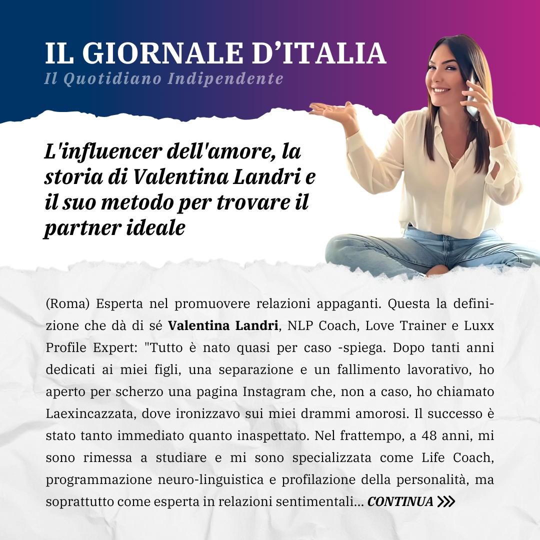 Valentina Landri è una Mental e Life Coach di successo, con una profonda esperienza nel campo delle relazioni e dello sviluppo personale. Specializzata in Programmazione Neuro-Linguistica (PNL), Valentina ha dedicato anni a formarsi e perfezionarsi come esperta nel campo della crescita emotiva e relazionale. È una professionista accreditata nel coaching, con una competenza specifica nell’aiutare le persone a superare blocchi emotivi, rafforzare l’autostima e riscoprire il proprio valore in amore. Grazie alla sua metodologia pratica e mirata, Valentina è oggi riconosciuta come punto di riferimento per chiunque voglia costruire relazioni autentiche e soddisfacenti.